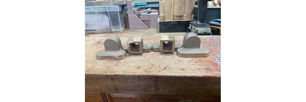 Can you identify what the four brass castings are? Terry Holtby has been at it again. Small items they may be but nevertheless needed to restore this lovely loco to as new condition. Thank you Terry. See pics of milling machine, slidebar roughing out and Terry's castings. Watch this space!