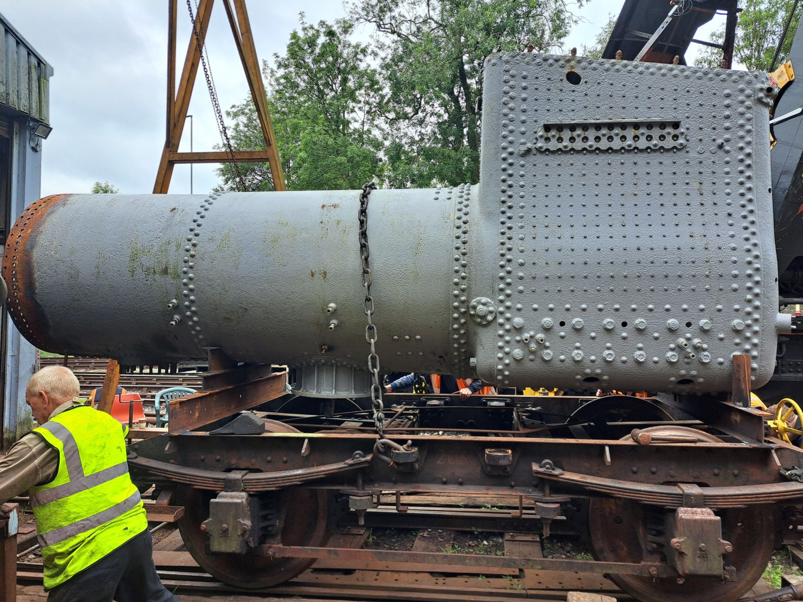 The most expensive single item on the loco. Our intention is to carry out as much unskilled work to the requirements of the boiler inspector and in conjunction with our boilersmith. Using the ELR breakdown crane the delicate operation of lifting and rotating the boiler was carried out by Jonathan and Harry from ELR. Our thanks to them. It was placed on a modified, adapted and redundant Mk1 carriage bogie. It is now inside, out of the weather and can be worked on without interruption. Work removing the foundation ring rivets is well advanced. We expect to be removing the ring around Feb/March. It will have NDT testing to see if it is fit to be re-used saving significant outlay for a replacement. The smokebox tubeplate has been removed as it is life expired. The original was pressed out of a single piece of plate, expensive to have manufactured. An economical replacement would be fabricated from a disc and band welded together. We hope to progress this as the raw materials are not too expensive and much of the work can be done in-house providing work for our merry band. Welding will be done by a coded welder and will require NDT inspection and certification.