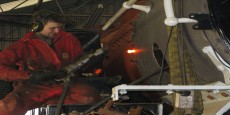 Following its return and initial dropping into the frames, the boiler has now been correctly positioned and the smokebox trial fitted to make sure it was correctly aligned with the boiler. The smokebox was then removed and the compensating ring ground down to be…